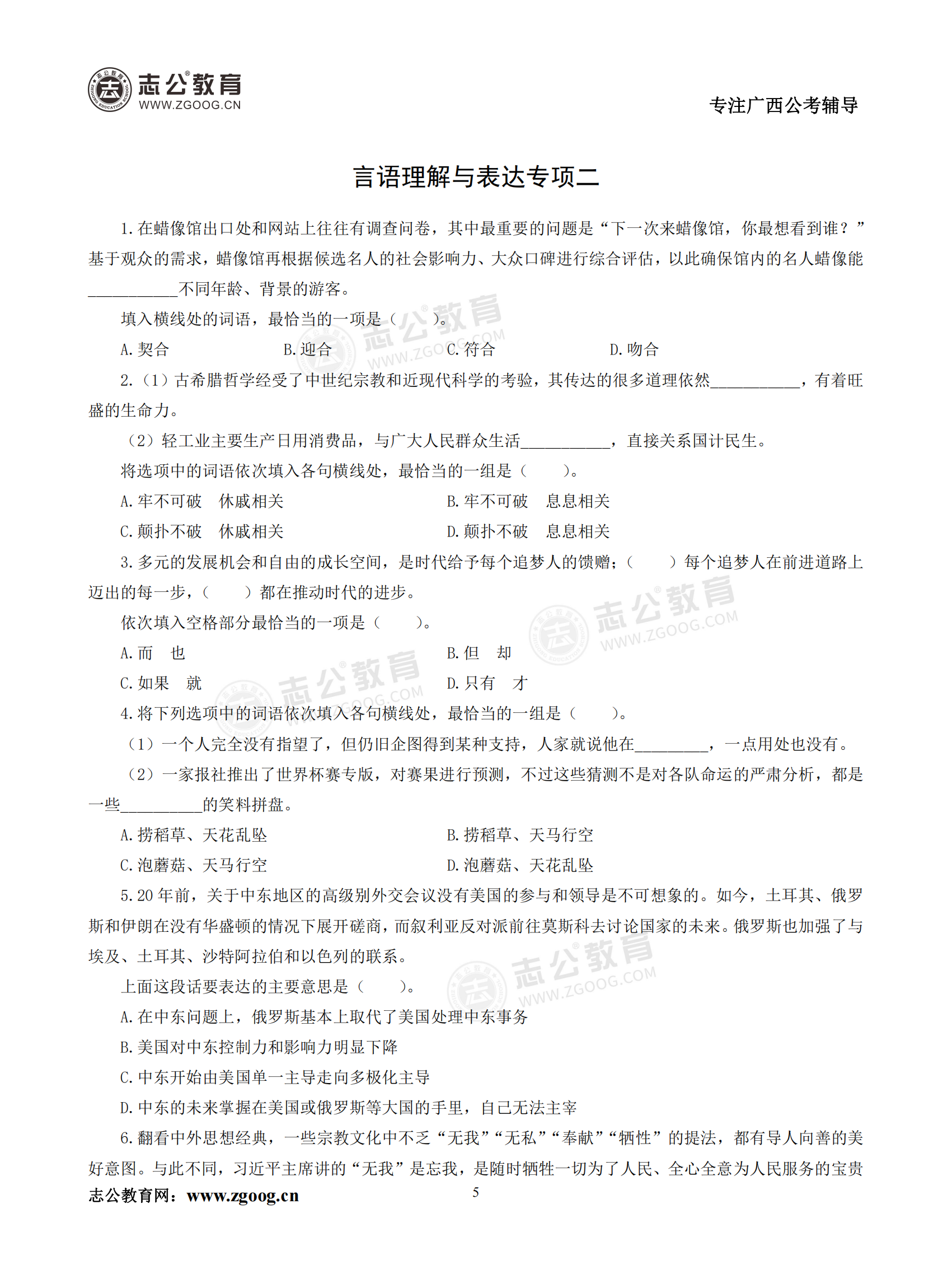 【公考模塊練習(xí)】言語(yǔ)理解題二(試題)