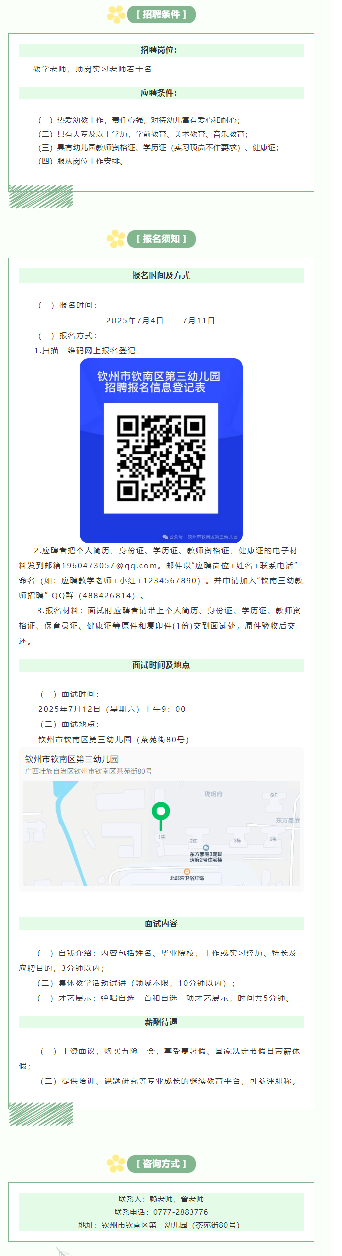2025年欽州市欽南區(qū)第三幼兒園秋招聘教學老師、頂崗實習老師公告
