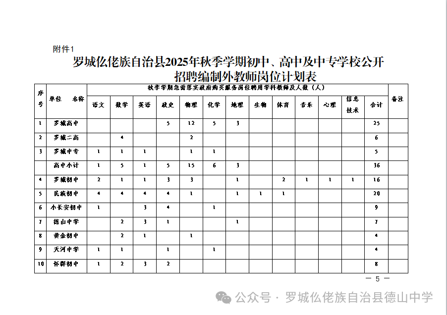 原文標題:羅城仫佬族自治縣2025年秋季學期初中、高中及中專學校公開招聘編制外教師工作的公告
