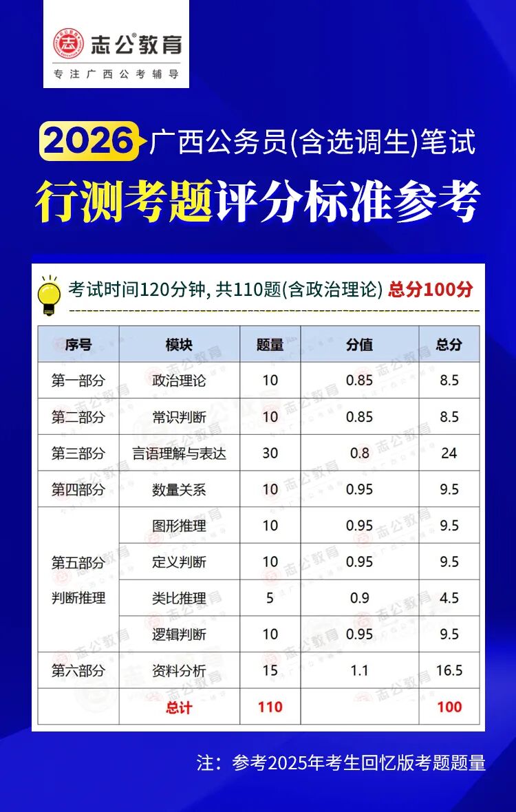 2026廣西區(qū)考/事業(yè)單位筆試分值